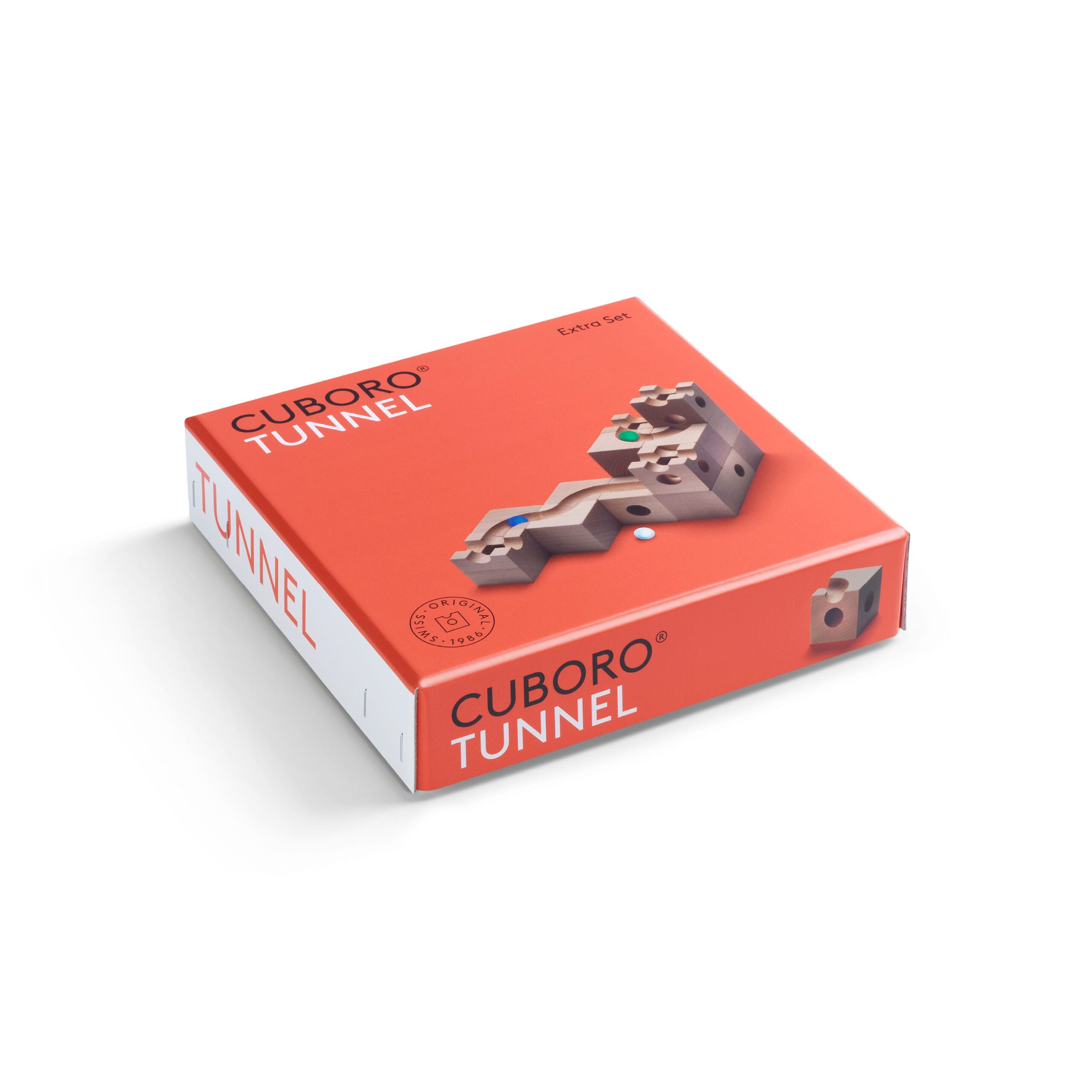 Tuneluri surpriză. Extensie pentru seturile CUBORO STANDARD care permite crearea de tuneluri prelungite şi întortocheate forţând bila / mărgeaua să ruleze ascuns, în interiorul cuburilor.