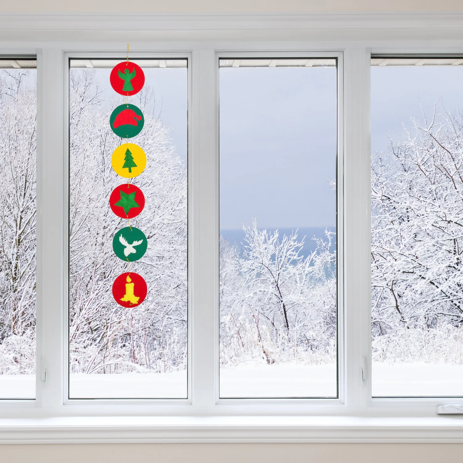 Aceste ghirlande mari pot fi realizate cu ușurință de copiii cu vârste începând de la 3-4 ani, cu puțin ajutor din partea adulților. Ghirlandele cu motivele înger, stea, brad, cap de ren, căciulă și lumânare arată foarte frumos la fereastră, pe perete sau chiar atârnate liber (vă recomandăm să faceți o ghirlandă cu două fețe, combinând 2 ghirlande). Sunt ideale pentru Advent și Crăciun.