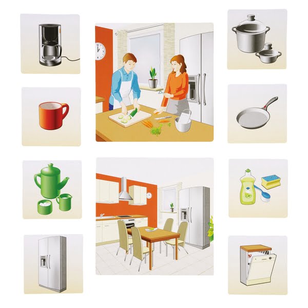 Imaginile se pot combina în pictoriale complexe care vor arăta activităţi cotidiene până în cele mai mici detalii (de ex. gătitul sau igiena corporală sau repausul în familie etc.). Cartoane mari reprezintă scena principală (camera de zi, dormitor, baie, bucătărie etc.) iar multitudinea de cartonaşe mici cu imagini individuale pot fi folosite pentru crearea unor poveşti şi activităţi în jurul scenei principale.