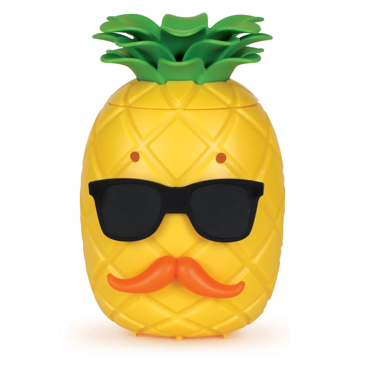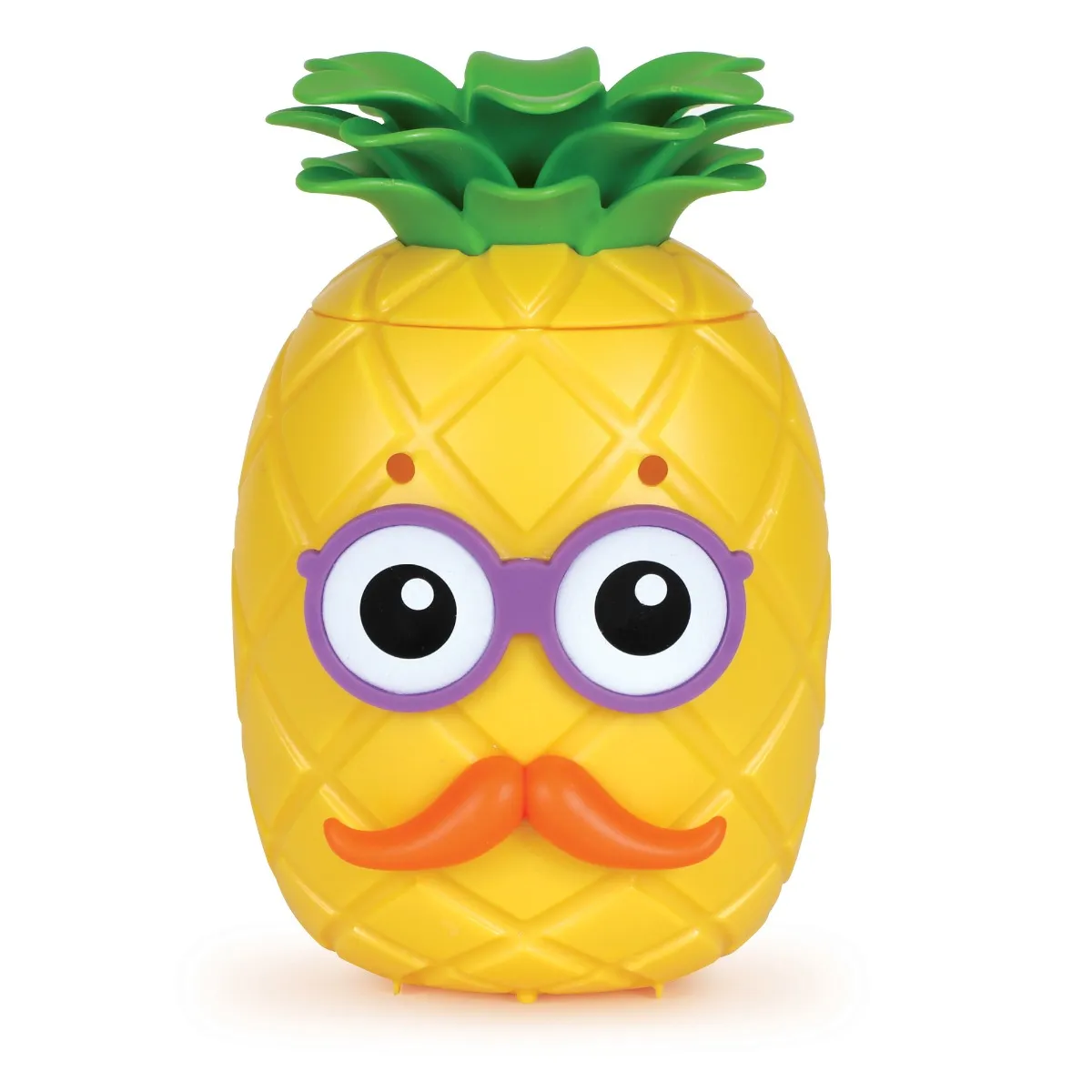 • Setul conţine: Ananasul Mr. Pineapple cu un capac detașabil, 40 de piese de față, 3 perechi de brațe, 1 oglindă și 1 poster extins cu sentimente.