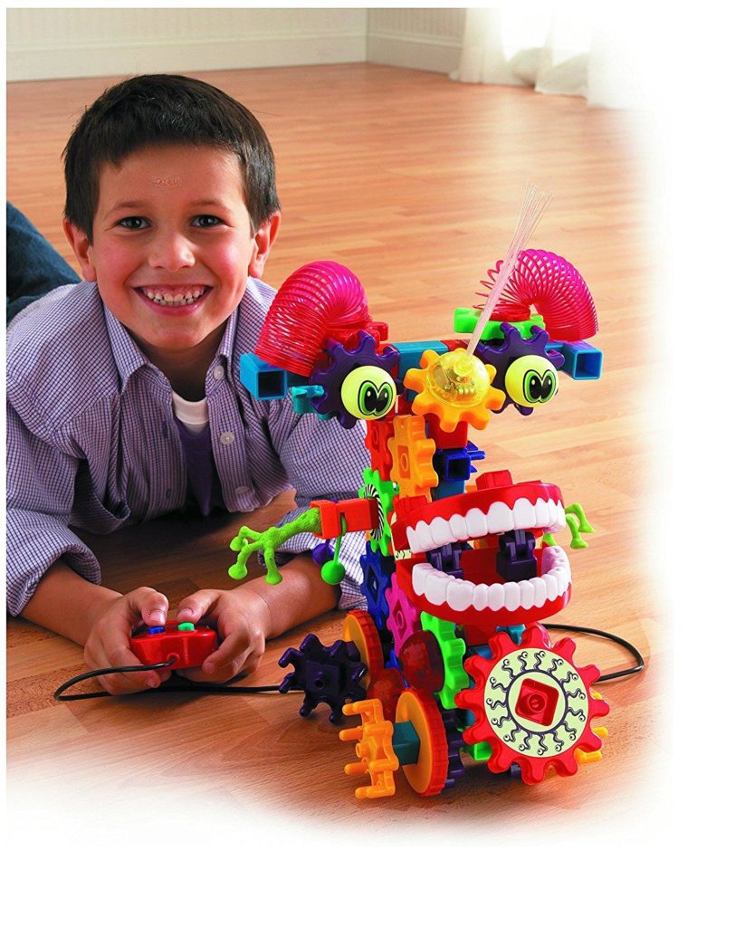 Set de construcţie şi asamblare din rotiţe dinţate, „Gears”. E vorba de angrenaje, stâlpi, plăci conectoare etc.) care sunt interschimbabile şi se asamblează în orice combinaţie cu un singur click.