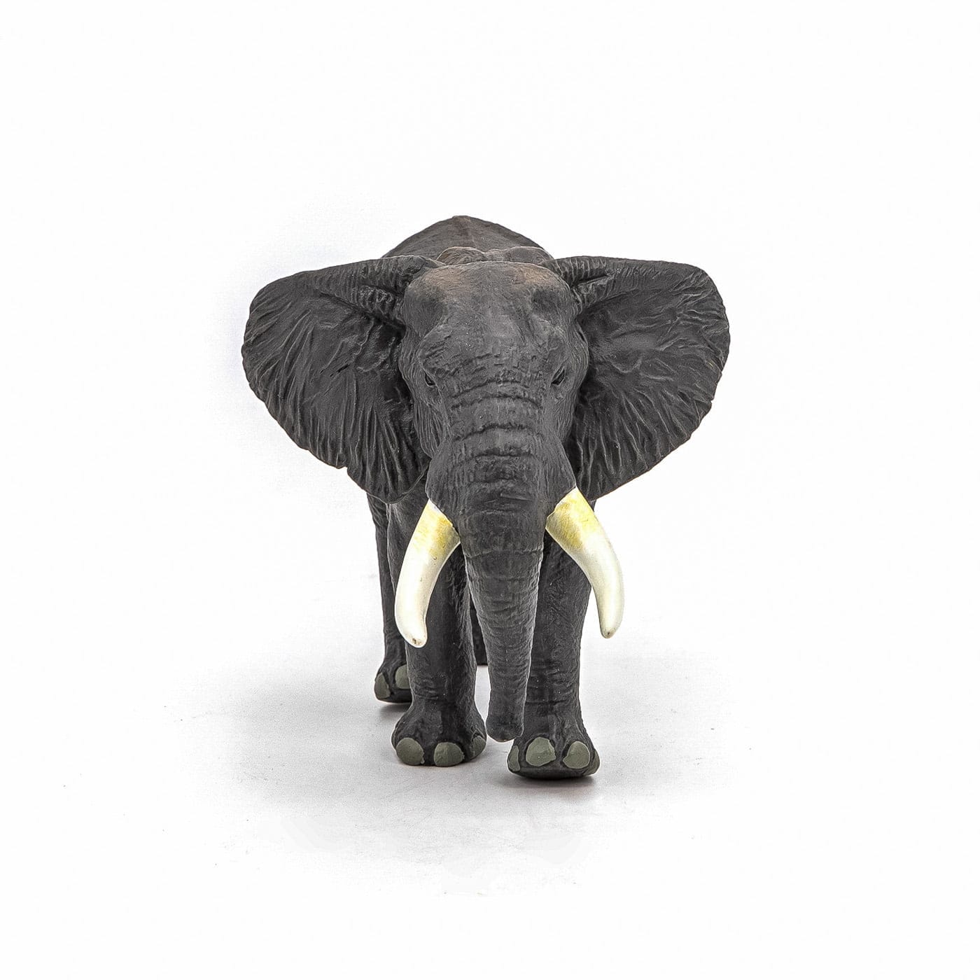Vizitati cerbul cu coada alba maiestuoasa in inima padurilor, explorati savana alaturi de puternicul tigru de Sumatra sau urcati pe varfuri acoperite de zapada pentru a cauta leopardul de zapada. Elefantul african este cel mai mare mamifer terestru din lume! Prin urmare, este destul de firesc ca el sa domneasca in savana. Ceea ce il caracterizeaza este, fara indoiala, un trunchi urias, urechi mari pe care le foloseste pentru a se racori. Trompa este de fapt o prelungire a buzei si nasului lor, permitand elefantului sa comunice, sa-si aduca apa si mancare la gura, sa traga si sa transporte ramuri si sa strige. Coltii sai sunt alcatuiti din fildes si smalt si sunt de fapt doi dinti, folositi ca unealta si ca aparare in lupta. Elefantul traieste in turme de aproximativ 20 de indivizi si isi petrece cea mai mare parte a timpului cautand hrana. Se hraneste in principal cu frunze, ramuri de tufis sau copac, fructe sau scoarta. Produsul are urmatoarele dimensiuni 16.1 x 8.9 x 9.8cm si este recomandat copiilor cu varsta peste 3 ani. De mai bine de 20 de ani, Papo inoveaza constant si ii face pe copii din intreaga lume sa viseze cu o gama bogata de peste 600 de produse, reprezentand 12 lumi, animale si personaje. De la modelul original la serie, fiecare dintre figurinele Papo a fost conceputa si creata in Franta pentru a fi fabricata intr-o permanenta preocupare pentru calitate. Pictate manual, atentia la detalii este acum recunoscuta. Figurinele Papo se disting prin acuratete si realism, detaliile sunt de asa natura incat am putea crede ca se vor pune in miscare.