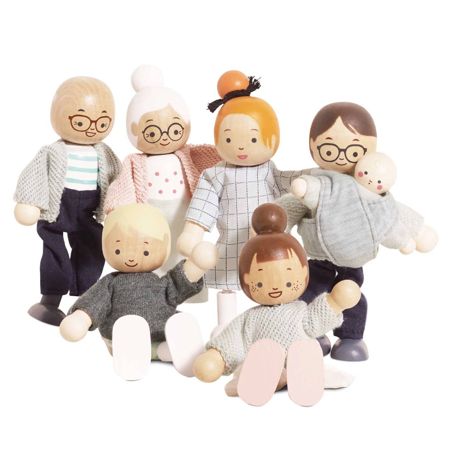 O familie drăguță de figurine pentru căsuțe de păpuși, gata să se mute în noua lor casă de vis. Setul, format din 7 personaje superb detaliate și flexibile, include părinți, bunici, copii și un bebeluș. Realizate din lemn durabil certificat FSC® și îmbrăcate în ținute frumoase, finisate manual, păpușile sunt gata să fie primite cu brațele deschise în noul lor cartier. Compatibile cu întreaga gamă de case de păpuși Le Toy Van din lemn și accesorii.
