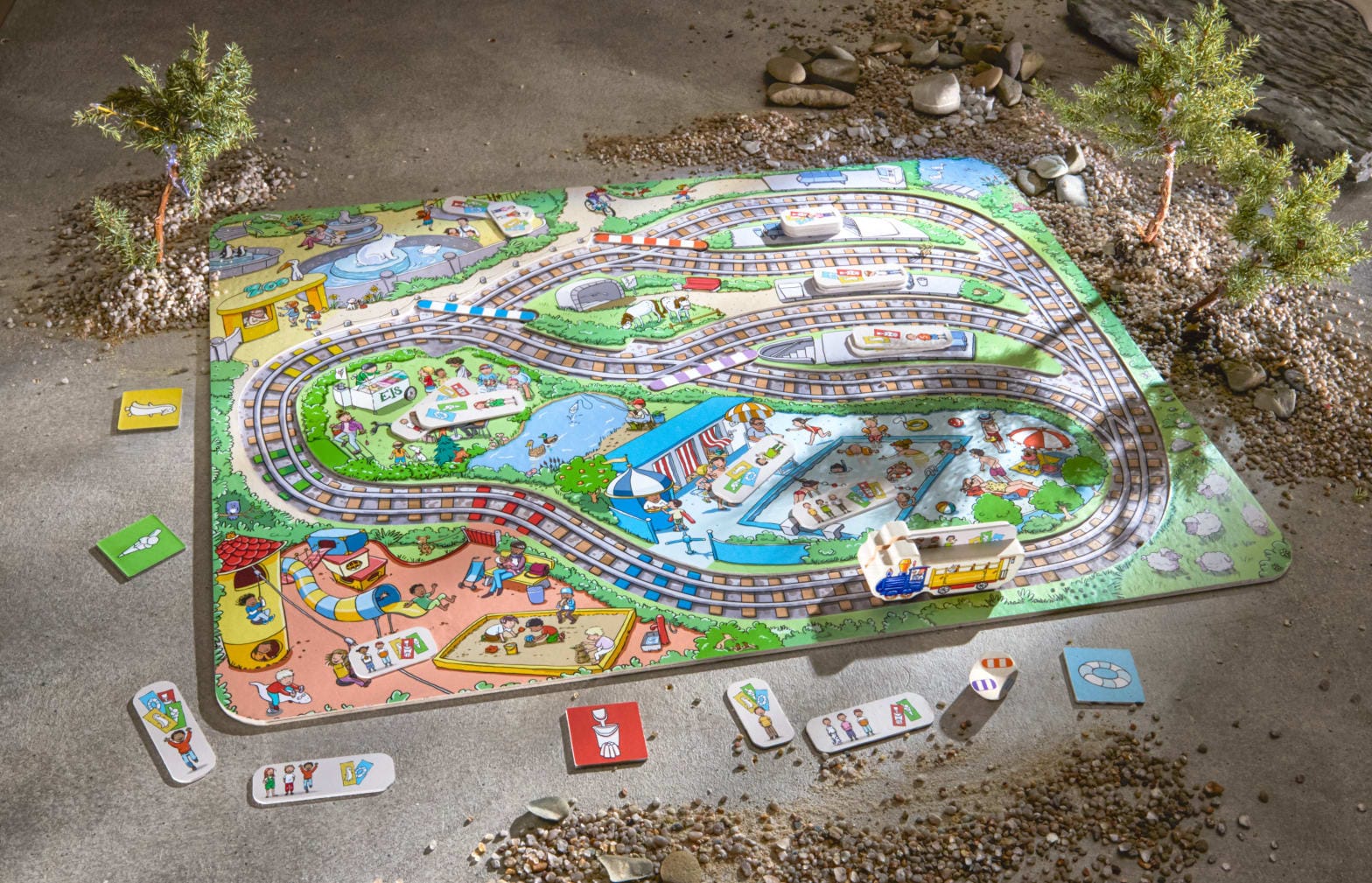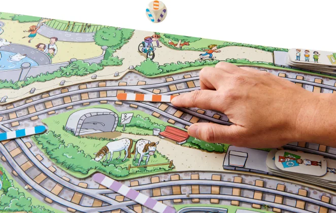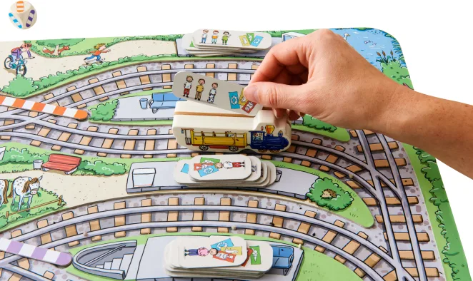 Chuu-chuu, vine trenul! Numeroși pasageri se înghesuie pe cele patru peroane. Jucătorii vor avea nevoie de puțin noroc atunci când aruncă zarurile și de o privire de ansamblu atunci când ajustează punctele. Dar ce se întâmplă? Pasagerii au bilete pentru stații diferite. Câștigătorul este jucătorul sau jucătoarea care reușește să ducă cei mai mulți pasageri cu trenul la stația corectă.