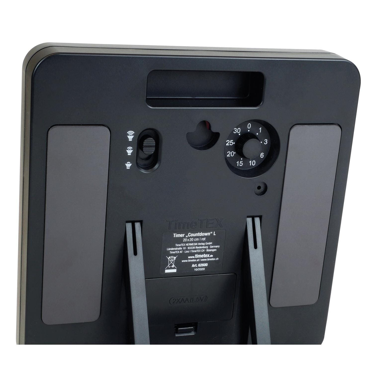 Semnalul sonor de expirare a timpului poate fi setat pentru a fi puternic, silențios sau tăcut, în 8 variante diferite. Cu picioare rabatabile, orificiu de fixare pe perete și magnet pe spate pentru fixarea pe tablă. Sunt necesare 2 baterii AA (nu sunt incluse).