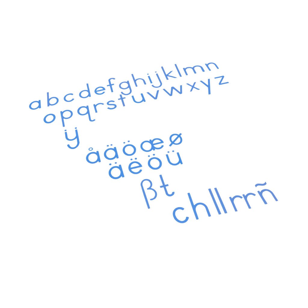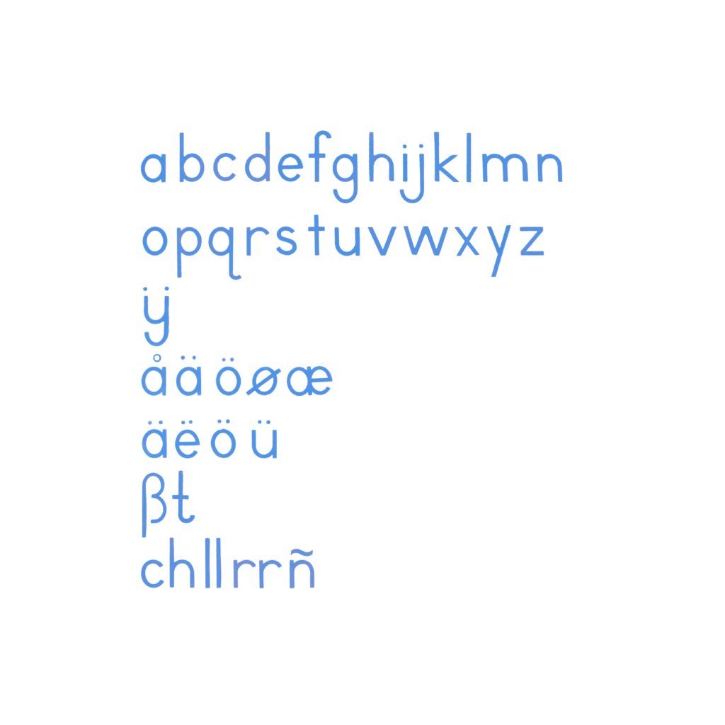 Medium Movable Alphabet: International Print – Blue – Montessori Nienhuis