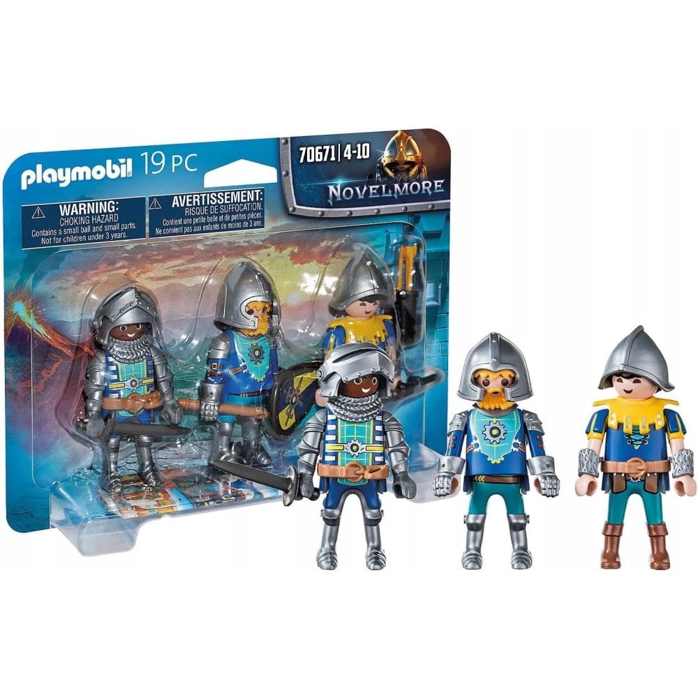 Setul include: trei cavaleri Novelmore cu armura si casca, scut, sabie, arbaleta, stea de dimineata si multe alte accesorii. Recomandat pentru varsta de 4 ani +