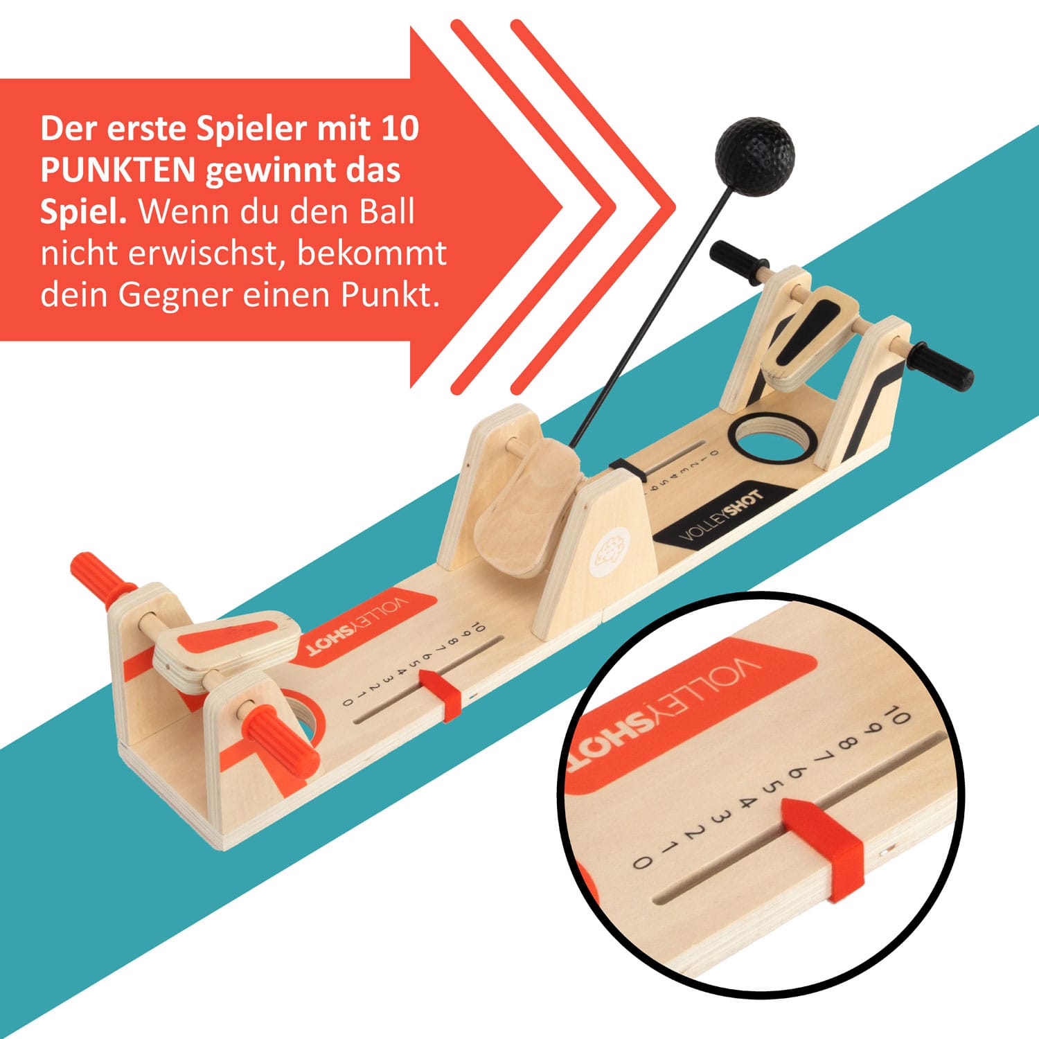 Volleyshot de la Fat Brain Toys este un joc de îndemânare și reflexe, conceput pentru a aduce energie și distracție dinamică în serile de jocuri sau la petreceri. Fiecare jucător controlează o paletă, iar scopul este să mențină mingea în mișcare, lovind-o înainte ca aceasta să treacă de partea sa. Construit din piese de lemn de calitate, jocul are un design robust și atractiv, fiind potrivit pentru copii de la 8 ani în sus, dar și pentru tineri și adulți care caută un joc rapid și competitiv.
