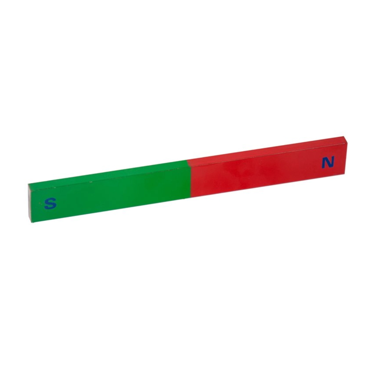 Magnet tip bară, realizat din AlNiCo. Are dimensiuni mari, de 160 x 20 x 6 mm. Polii sunt marcați distinct prin culoare (roșu și verde) și însemnați pentru identificarea facilă în experimentare și predare.