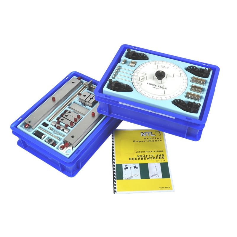 Masa de forte - Miscare rotatie - Kit experimente fizica - NTLSet tip trusă pentru experimente fizică pentru elevi pentru realizarea de experimente pe tema ”Fenomene mecanice – Forțe și mișcare de rotație” pe următoarele teme din curriculumul de fizică: