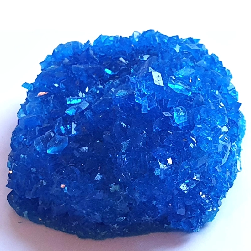 Seria didactică: Cristale individuale – Mostră de Calcantit, cunoscut în limba română și sub denumirea de vitriol de cupru, este un cristal de sulfat de cupru pentahidrat (CuSO₄·5H₂O), remarcabil prin culoarea sa albastru intens și luciul sticlos.