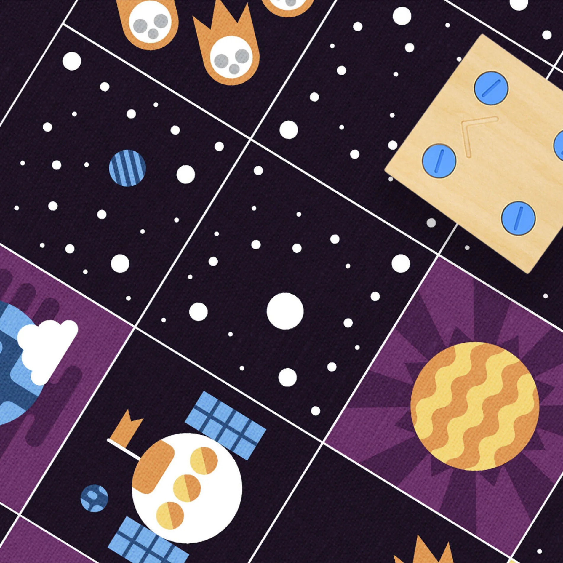 Cubetto – HARTĂ: Aventuri în spațiul cosmic – Covor de joc pentru robotul din lemn, 1 x 1 m – Coding pentru copii mici